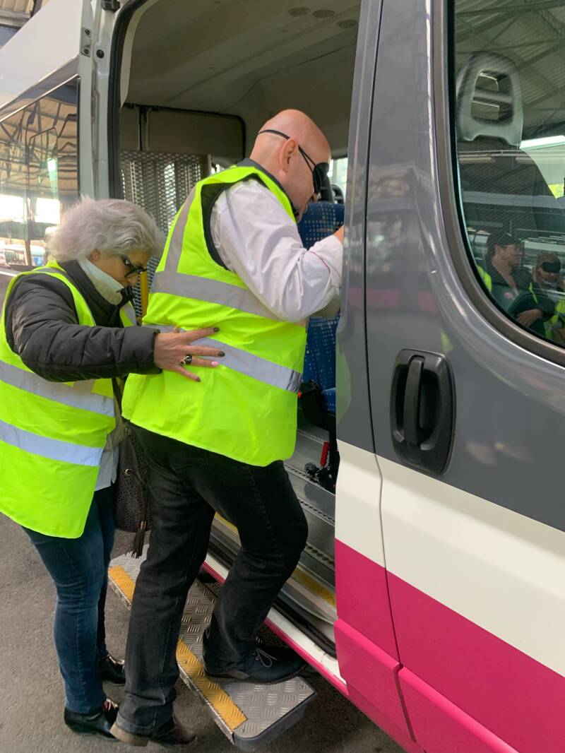 DiviaMobilités, bus, tram, vélo et stationnement de Dijon Métropole nous a contactés pour faire une sensibilisation, destinée à son personnel : conducteurs et conductrices, chauffeurs de navette. Comment guider, apprendre les gestes pour garder notre autonomie et être en sécurité ? Résultat positif pour des personnes attentives et soucieuses de connaître les bons gestes pour nous accompagner à la montée et descente du véhicule. Une formation à refaire, pour optimiser nos déplacements.